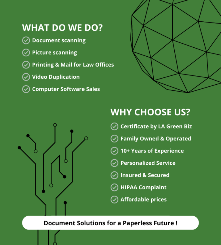 A full service record retrieval company, providing flexible, comprehensive on-site and off-site Document Scanning, Mail Scanning, Video Duplication, Computer Software Sales, Imaging Services.